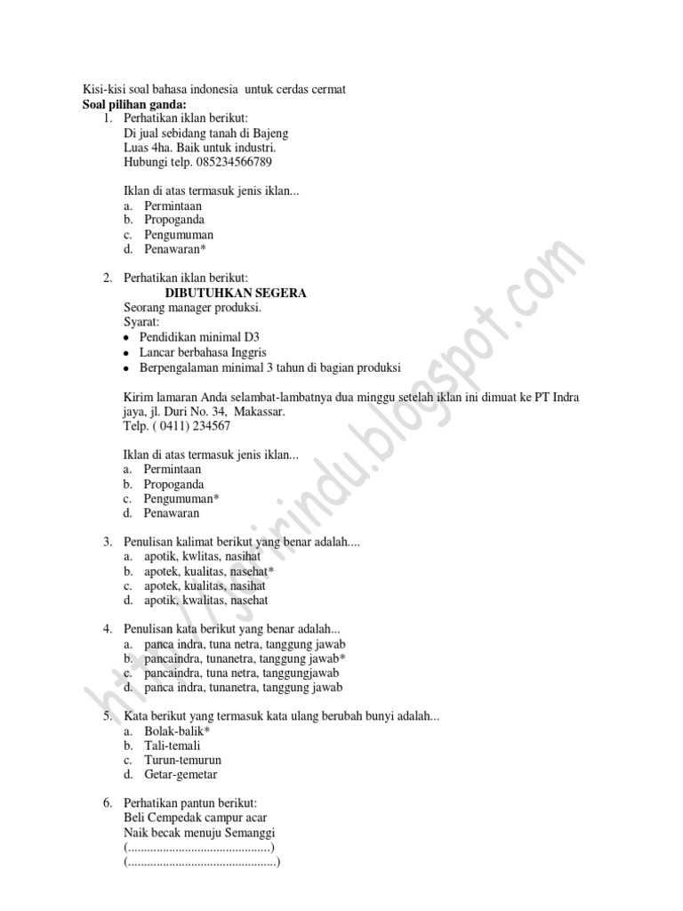 Sukses Ujian Nasional Bahasa Indonesia Sd Paket 3 2013 from image.slidesharecdn.com Soal bahasa indonesia untuk tk b. Check spelling or type a new query. We did not find results for: Maybe you would like to learn more about one of these?