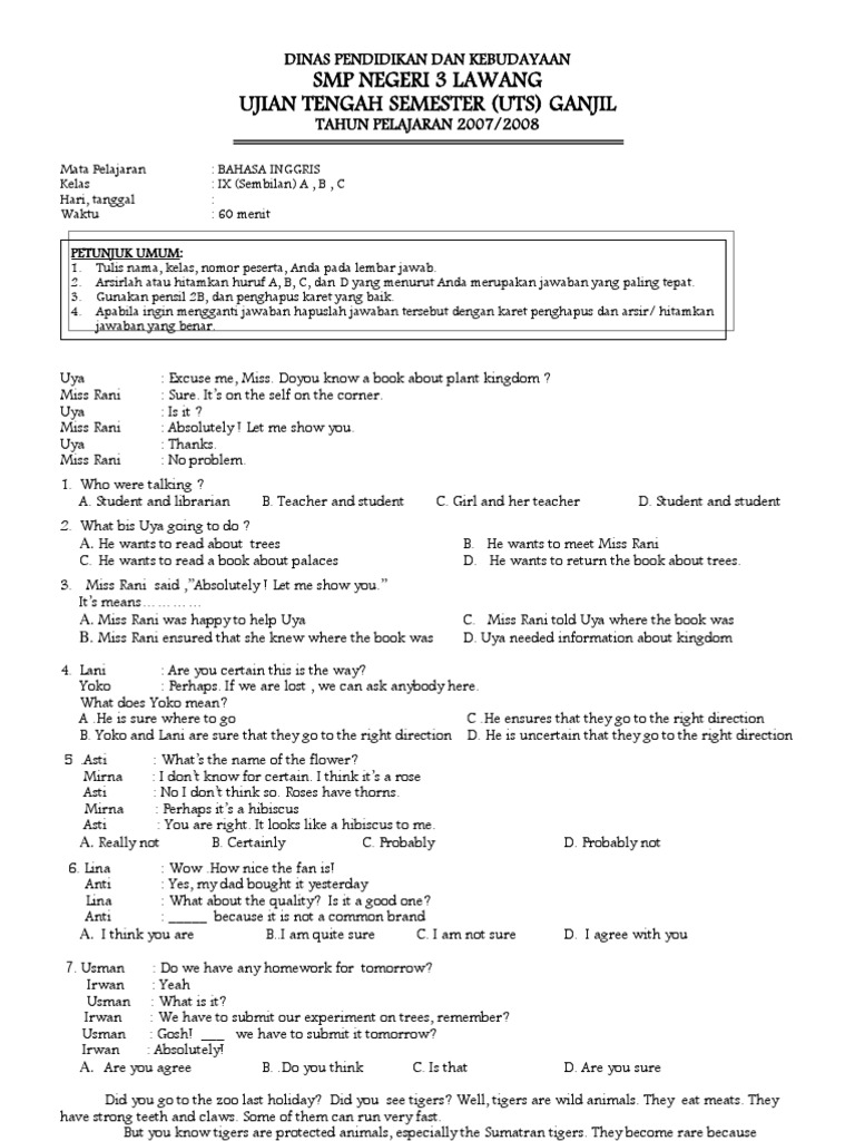 Soal Bahasa Inggris Kelas 9 Smp Mts Soal Pg Dan Essay 2021 from materibelajar.co.id Check spelling or type a new query. Maybe you would like to learn more about one of these? We did not find results for: Soal dan kunci jawaban bahasa inggris kelas 9 kurikulum 2013.